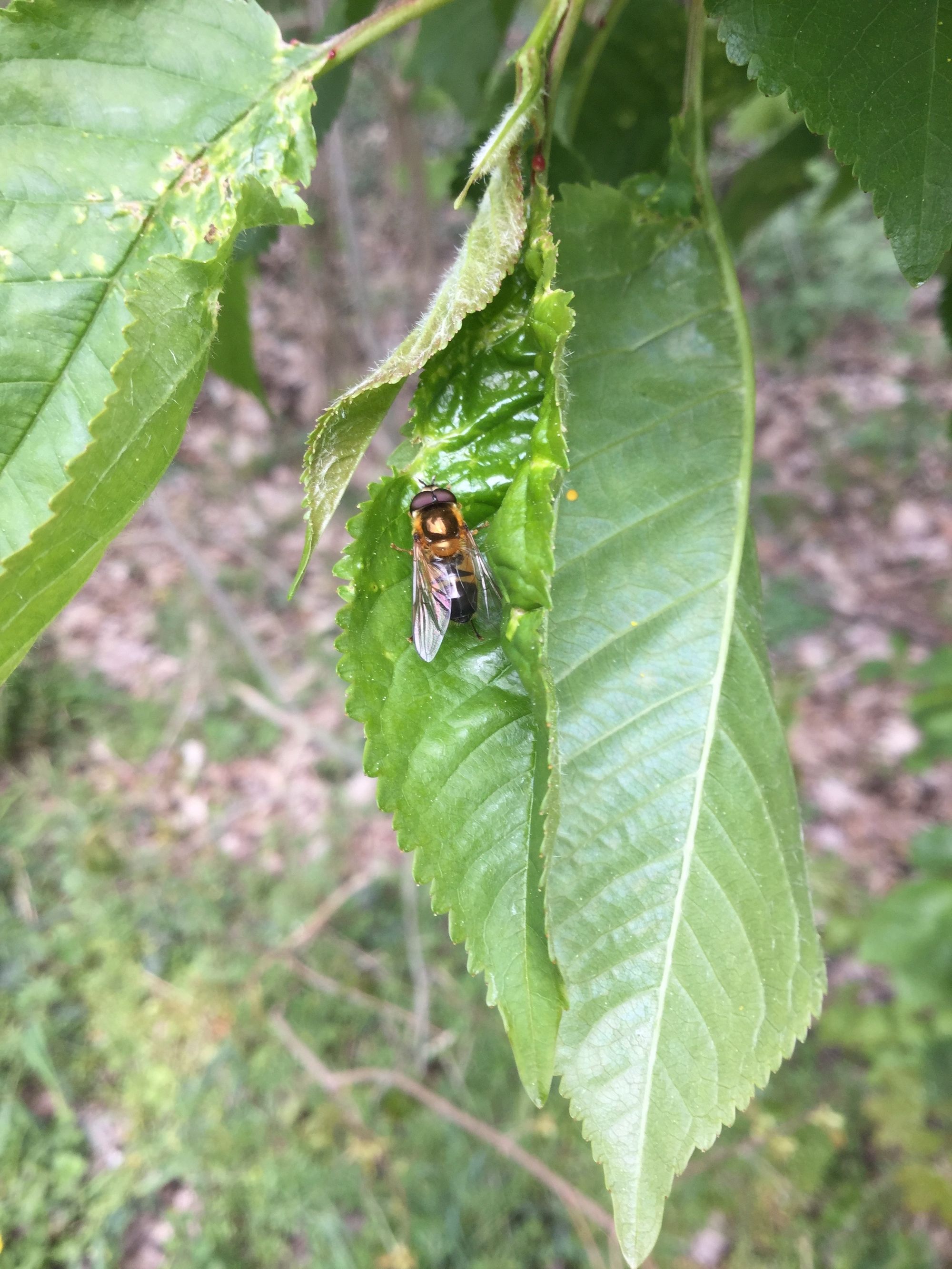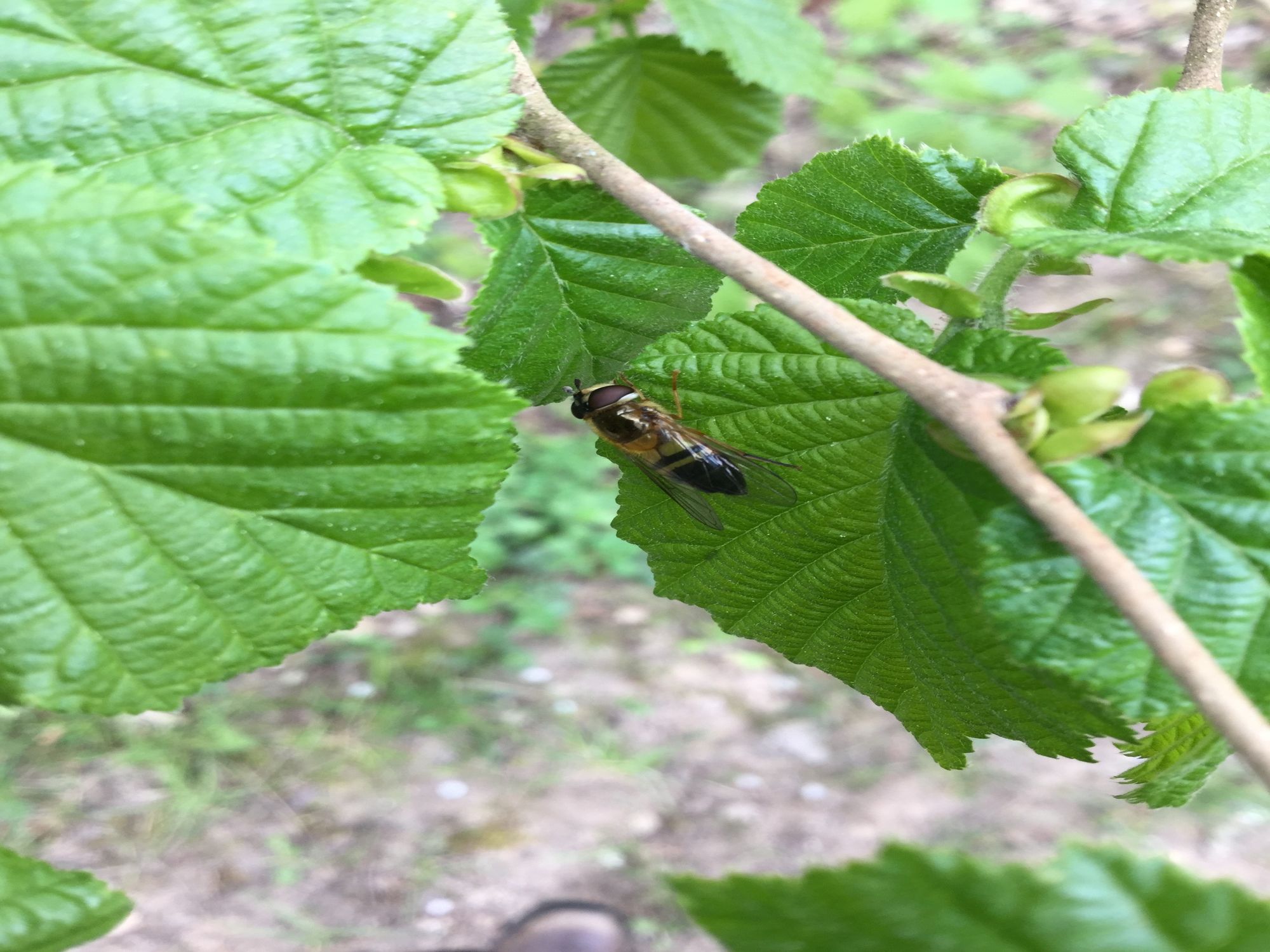 Auf einer unserer Wildnis-Flächen haben wir Schwebfliegen mit einem Handy mit der App "iNaturalist" fotografiert. Das geht am besten morgens, wenn die Tiere noch träge sind. Die Bilder konnten weltweit angesehen werden und schon bald darauf fanden sich Kenner, die die Art bestimmen konnten: Es handelt sich um die Zweiband-Wiesenschwebfliege (Epistrophe elegans).