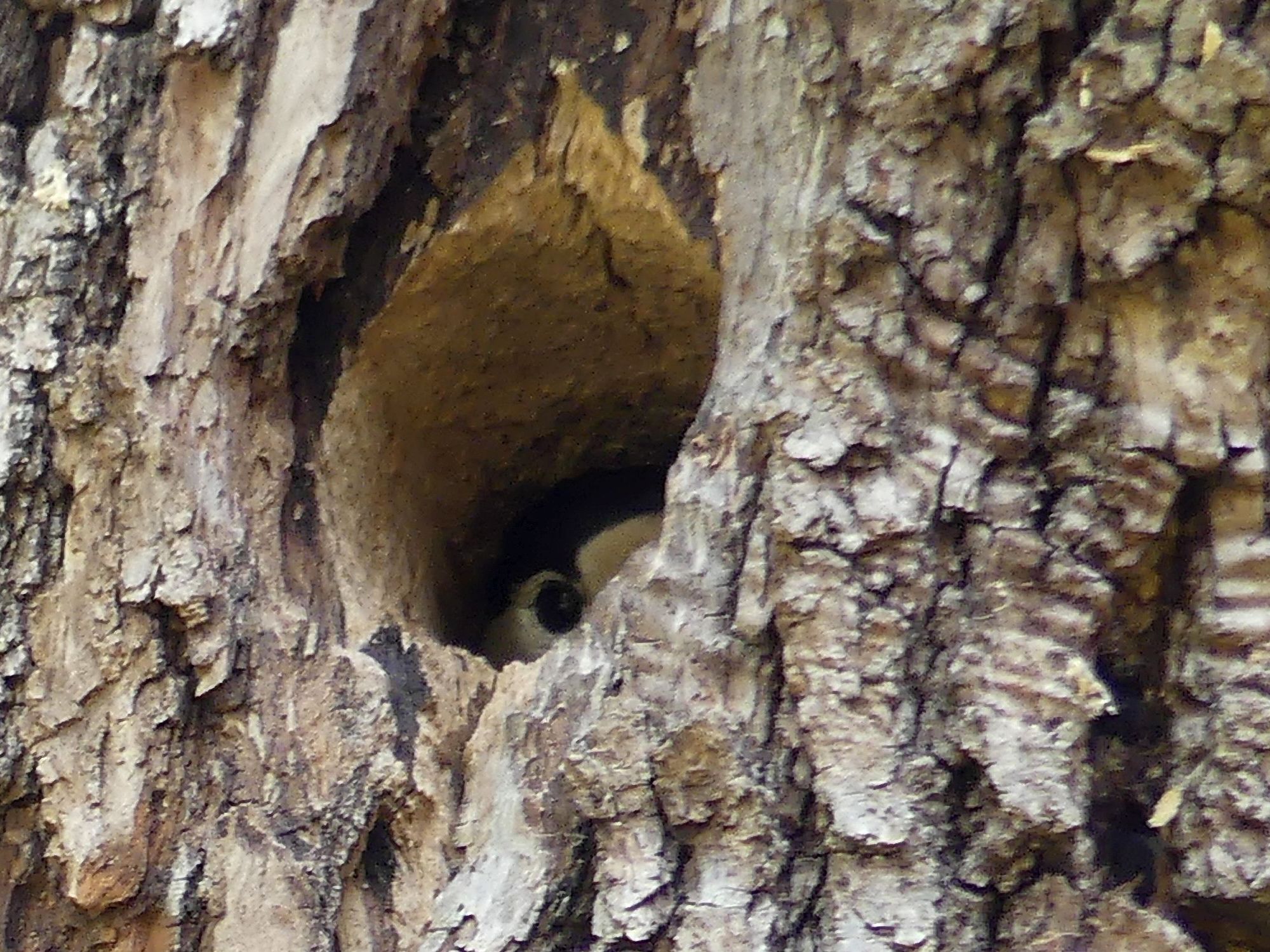 Spechte sind mit ihrem kräftigen Meißelschnabel sehr begabte Zimmerleute. Sie stellen aber auch hohe Anforderungen an die Qualität ihrer Wohnhöhle. Darum werden oft viel mehr Höhlen gebaut als benötigt, bis man sich dann für die eine passende Luxusimmobilie entscheidet. Auch die, nach circa zweiwöchiger Bauzeit, bezogene Höhle wird gerne noch erweitert und umgebaut - insbesondere, wenn der Platz für die Nachkommen doch zu eng wird. Ein Nest, im eigentlichen Sinne, wird nicht gebaut. Holzspäne bleiben auf dem Boden liegen, als weiche, saugfähige Unterlage für die Jungen. Das morsche Holz wirkt wärmedämmend wie Styropor. Während der Bauphase profitieren die Spechte auch von einem interessanten Atemschutzmechanismus: Damit der beim Hämmern entstehende Holzstaub die Atemöffnungen nicht verstopft, sind die Nasenlöcher mit speziellen kleinen Federn bewachsen - eine natürliche eingebaute Atemschutzmaske sozusagen. Spechthöhlen werden übrigens nicht nur für die Jungenaufzucht, sondern ganzjährig als Schlafstätten genutzt. Auch während der Familienphase nutzt das Weibchen eine andere Höhle zum Schlafen und überlässt dem Männchen die nächtliche Betreuung der Bruthöhle.