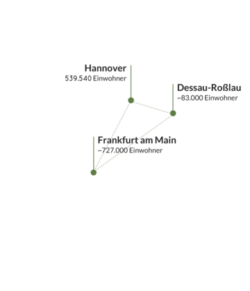 Die Einwohnerzahlen in Frankfurt am Main steigen rasant, in Dessau-Roßlau sinken sie – Hannover liegt in der Einwohnerent-wicklung etwa dazwischen. Drei sehr unterschiedliche Städte lassen von 2016 bis 2021 im Projekt "Städte wagen Wildnis" ausgewählte urbane Flächen „verwildern“.
