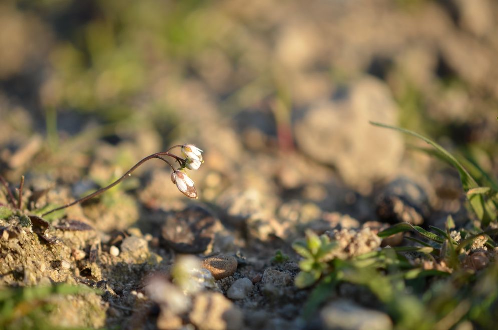 Von März bis Mai zeigt es seine weißen Blüten in Deutschland, aber man muss es erst einmal entdecken – denn es gehört zu den Winzlingen unter den mitteleuropäischen Blütenpflanzen und ist noch dazu auch optisch eher unauffällig: Das Frühlings-Hungerblümchen.